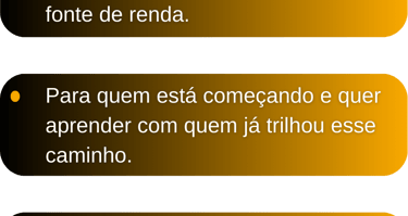 Encontros semanais ao vivo com mentores de diferentes nichos.