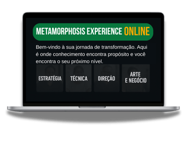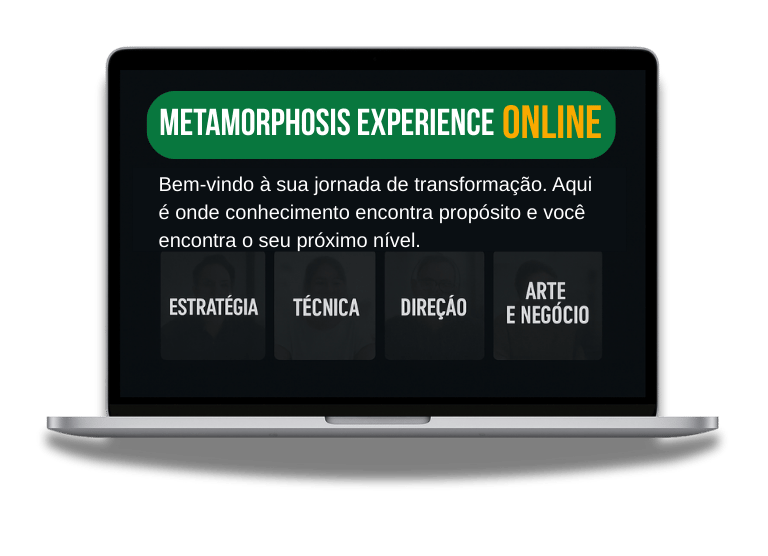 O Metamorphosis Experience é uma experiência online exclusiva, criada para fotógrafos que desejam se reinventar, escalar seus resultados e transformar a forma como vivem da fotografia. Com mentorias ao vivo, estratégias e acesso direto a conteúdos práticos sobre arte, técnica, direção e negócios, esse conhecimento vai muito além de um curso é um caminho de crescimento real.